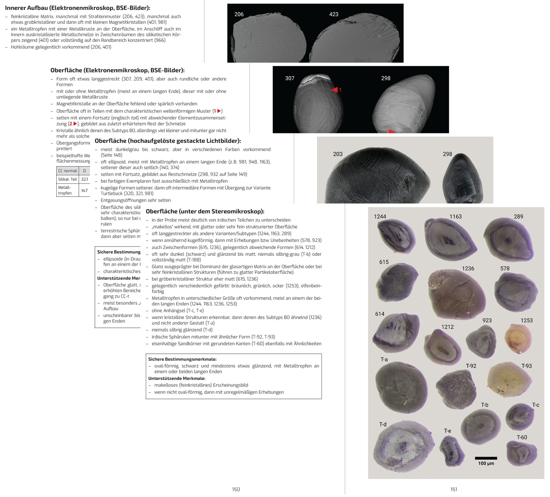 Die optische Vielfalt der Mikrometeorite ist groß. Einige Typen lassen sich recht einfach erkennen, für andere bedarf es tiefergehende Analysen. In diesem über 130 Seiten starken Teil das Buches wird anhand realer Bilder von Mikrometeoriten und ähnlichen terrestrischen Partikeln im Detail erklärt, woran man Mikrometeorite erkennt und wie man diese untereinander sowie von terrestrischen Partikeln unterscheiden kann.