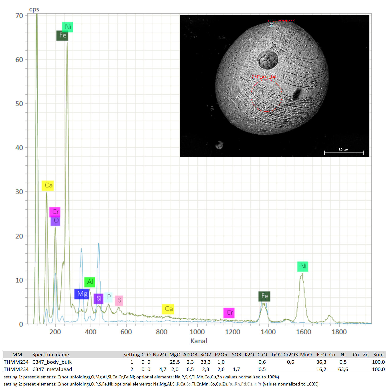 Metal differentiation: Fe/Ni bead, escape hole from metal bead