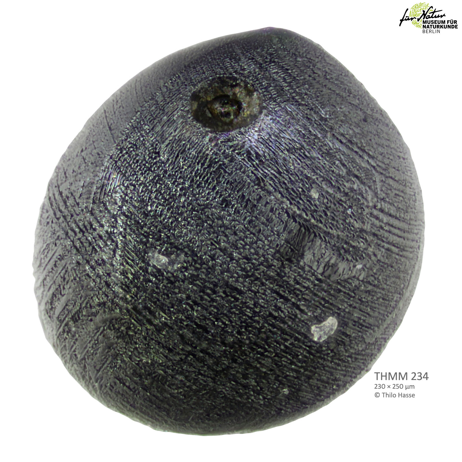 Size: 230 x 250 µm | Shape: roundish | Colour: grey/black