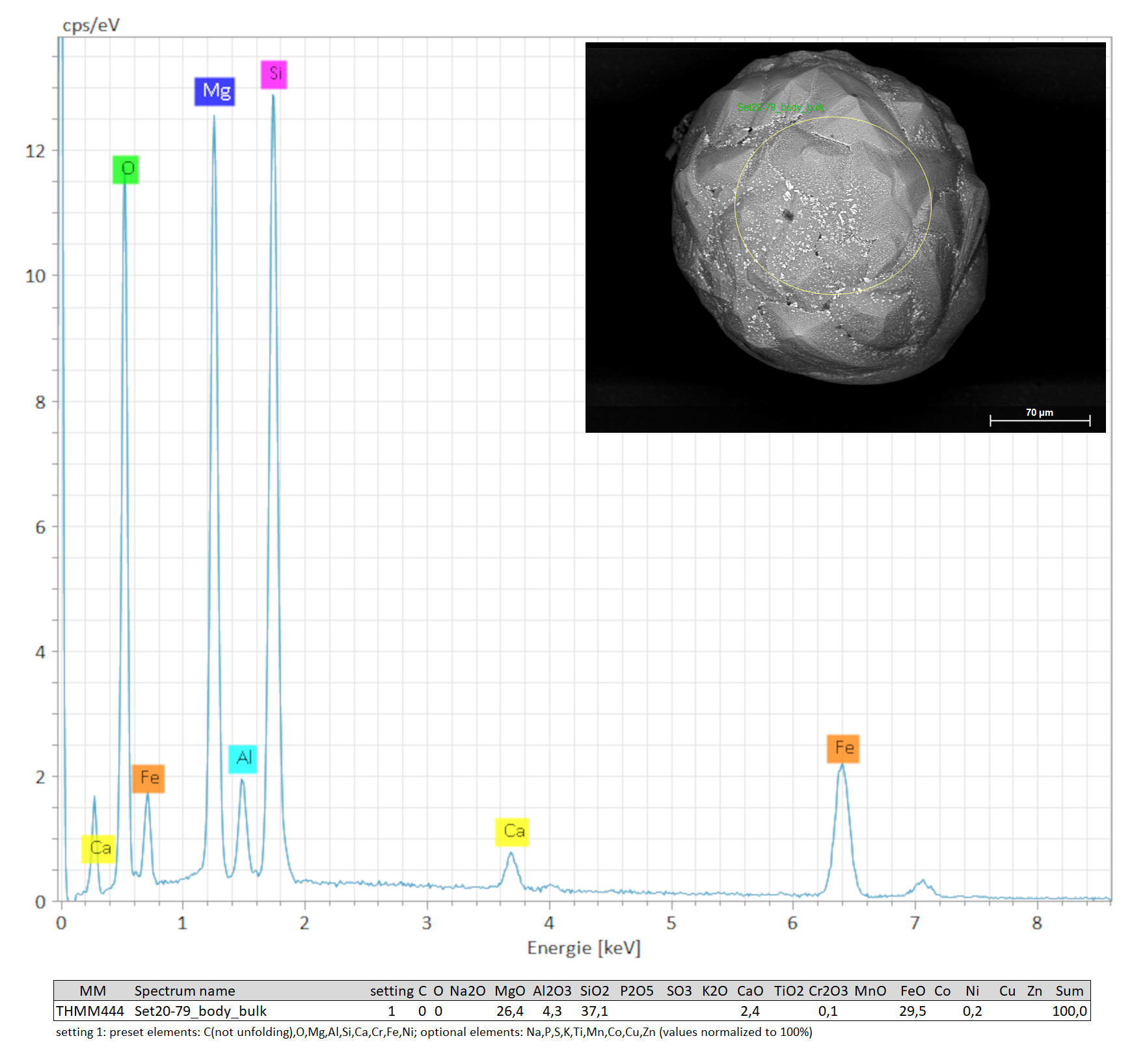 Size: Ø 240 µm | Shape: roundish | Colour: grey/black