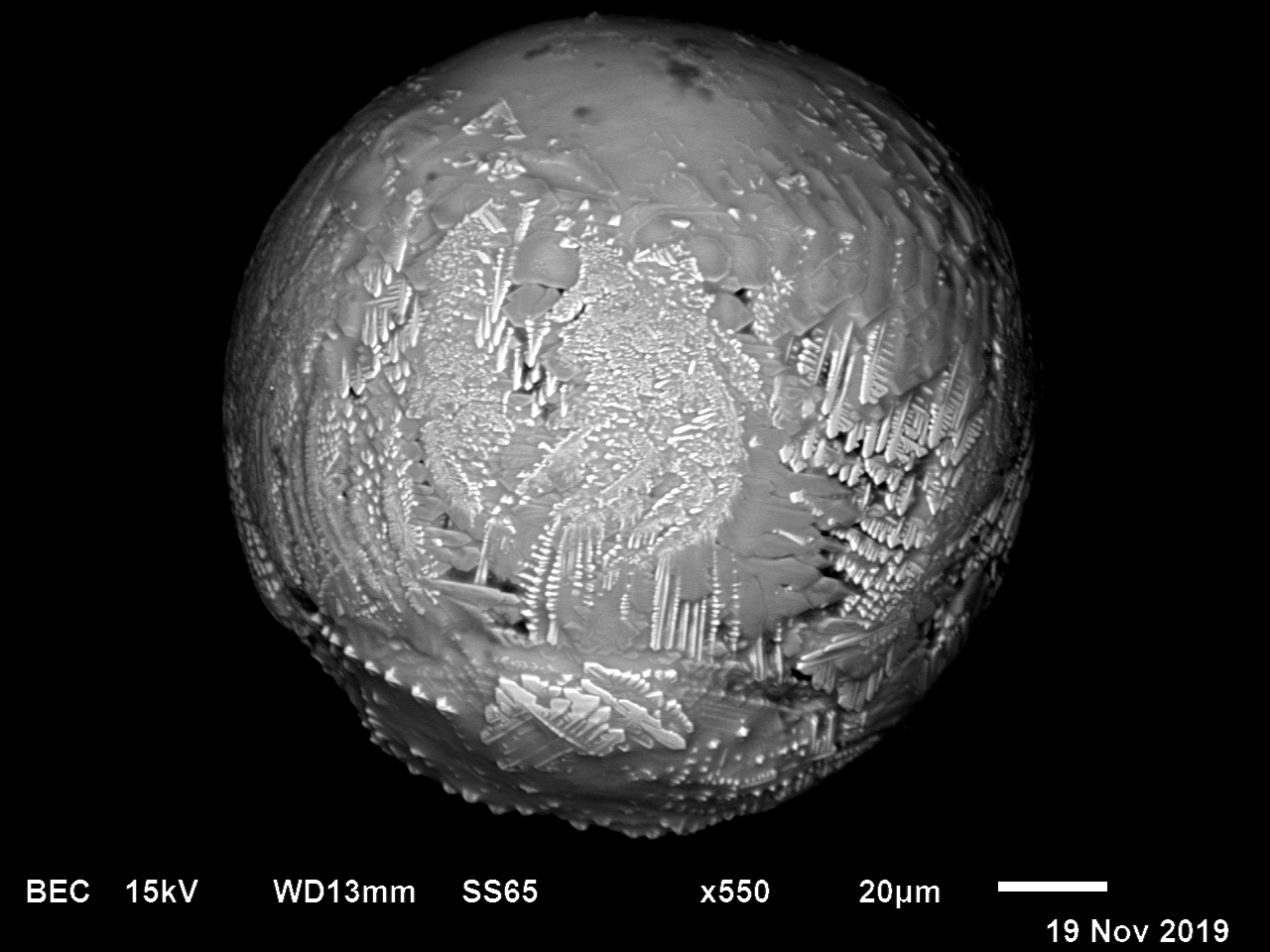 Size: Ø 155 µm | Shape: roundish | Colour: grey/black