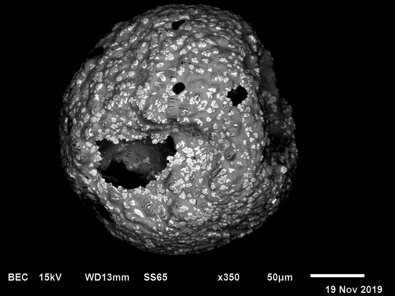 Size: 220 x 235 µm | Shape: roundish | Colour: grey/black