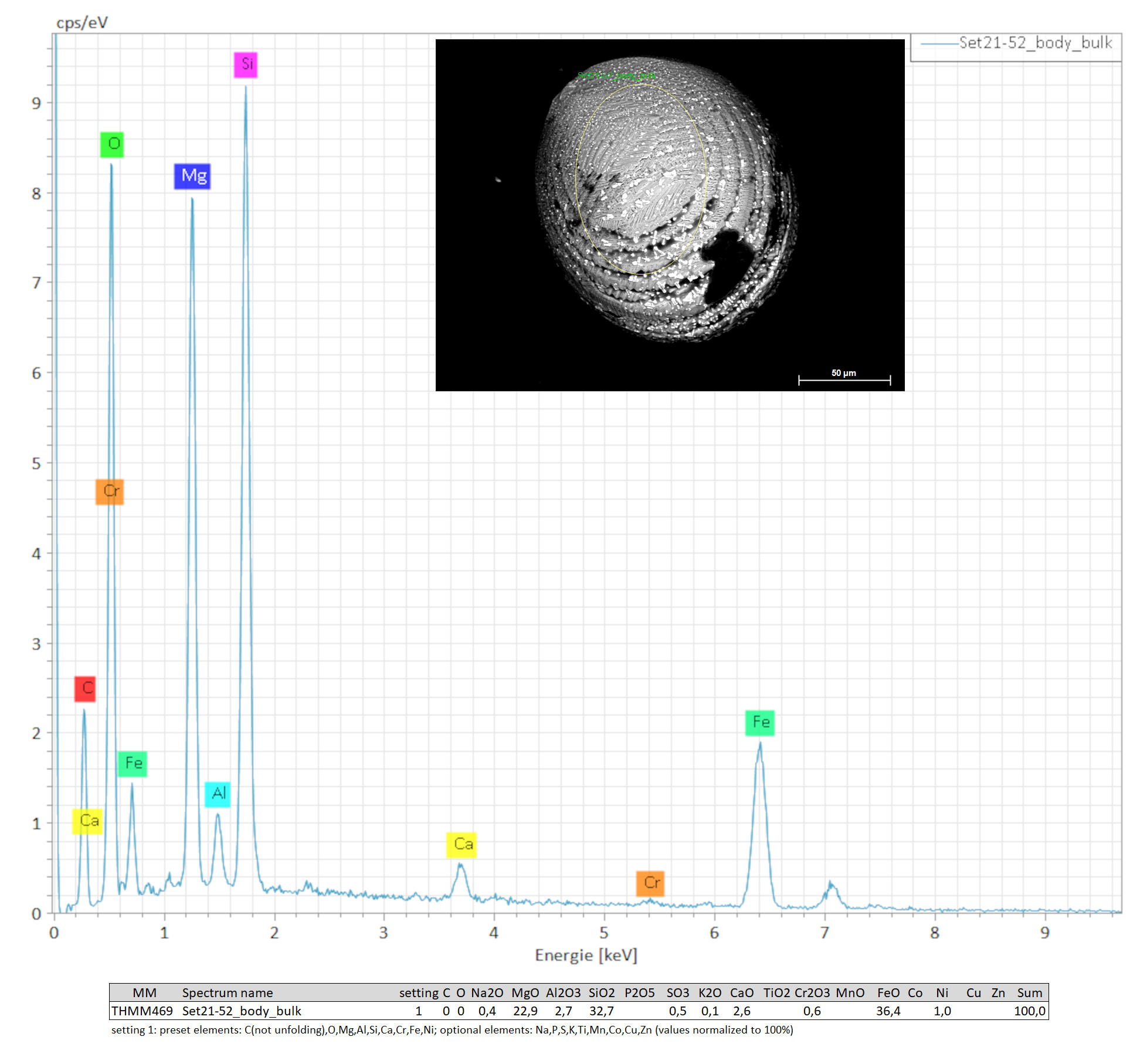 Size: 145 x 170 µm | Shape: roundish | Colour: grey/black