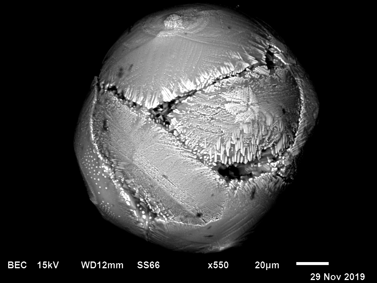Size: 140 x 155 µm | Shape: roundish | Colour: grey/black