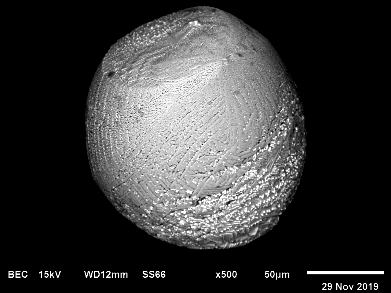 Size: 145 x 160 µm | Shape: roundish | Colour: grey/black