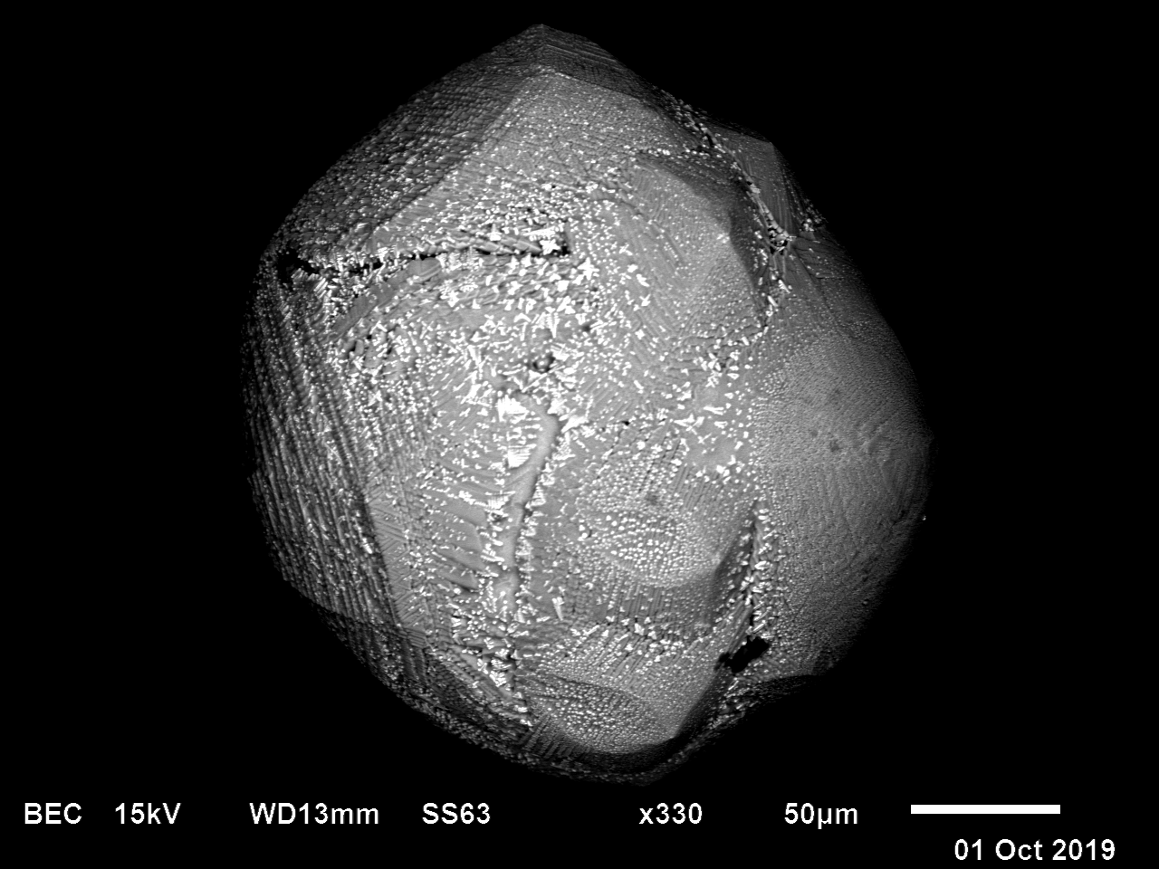 Size: 215 x 235 µm | Shape: roundish | Colour: grey/black