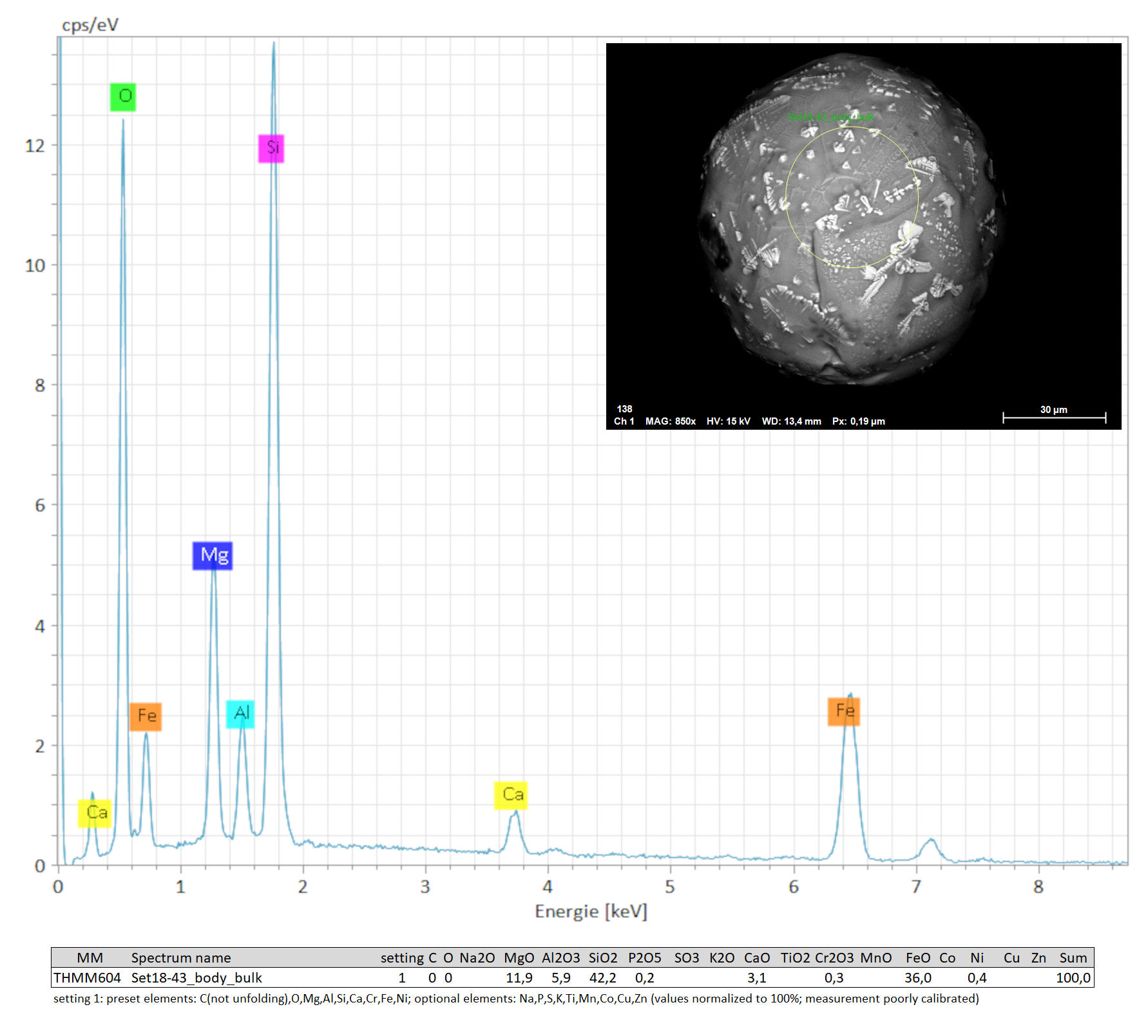 Size: 98 x 100 µm | Shape: roundish | Colour: grey/black